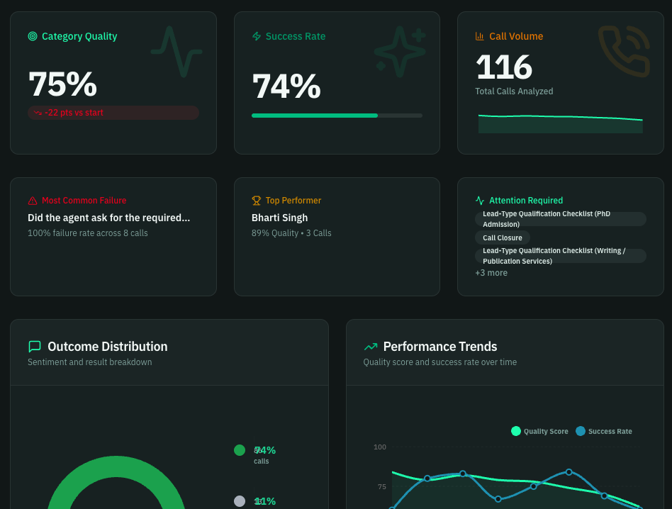See your team's performance at a glance. Track trends, spot issues, and celebrate wins — all in one place.